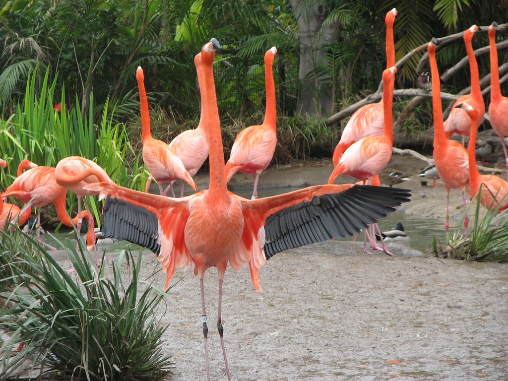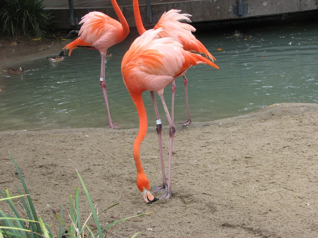 Flamands roses de l'excellent jardin zoologique de San Diego/Pink flamingos at San Diego's wonderful Zoo
