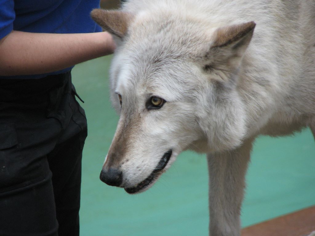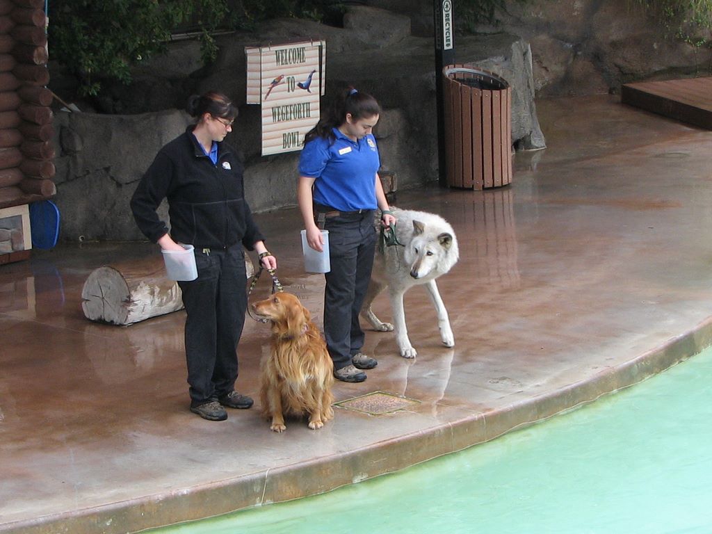 Akira, une louve grise, avec son amie une Irish Setter/Akira, a female grey wolf, with her doggy friend
