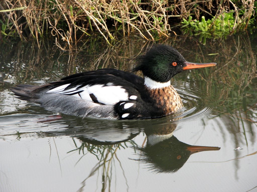Harle à poitrine rousse au Chula Vista Nature Reserve/A red-breasted merganser at Chula Vista Nature Reserve