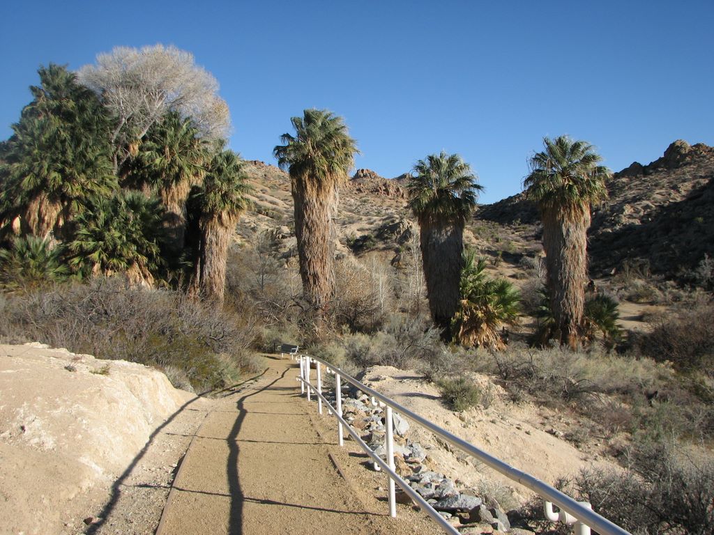 Scène typique du parc Joshua Tree près de Palm Springs/A typical trail in Joshua Tree Park near Palm Springs