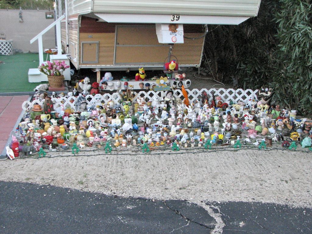 Dans les campings,les campeurs ont toute sorte de passe-temps. Celui-ci aime les figurines!/ In campgrounds, people have all kinds of hobbies: dolls and figurines in this case!