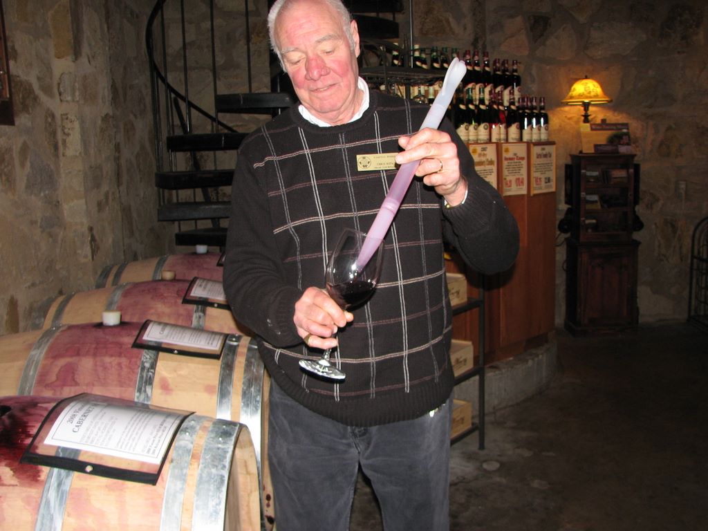 Nous avons dégusté un très bon cabernet sauvignon soutiré du baril./We tasted a very nice Cabernet Sauvignon straight from the barrel.